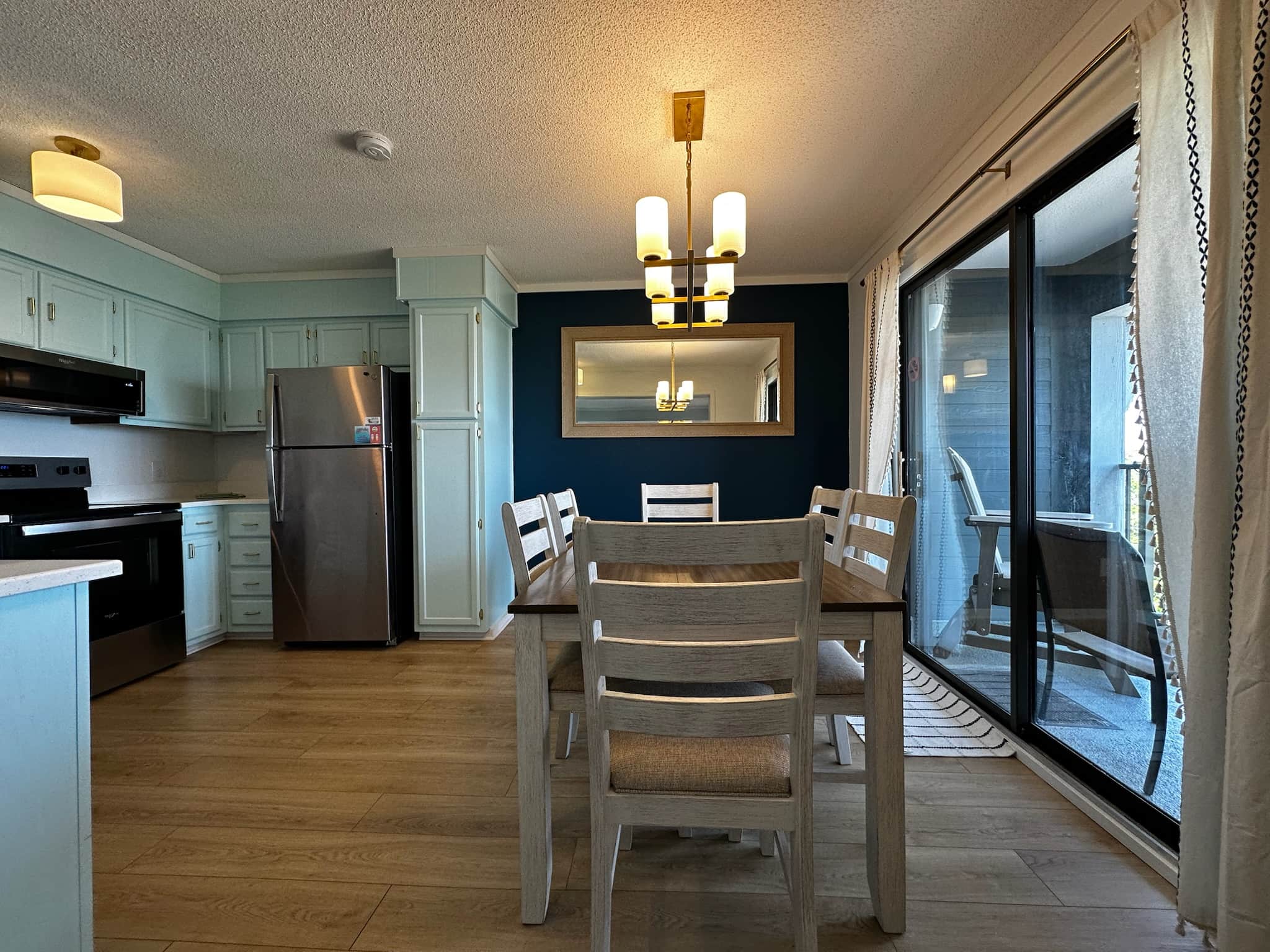 In the evening, you can enjoy rocking on the balcony with the afternoon sun behind you. Lull the kiddos to sleep after a day of fun with our galaxy projector located in the second bedroom. Our queen-sized pull-out sofa is a comfy way to host up to six guests.